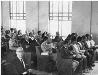 Congregación asistente, en la banca de enfrente algunos jóvenes de la LMJI