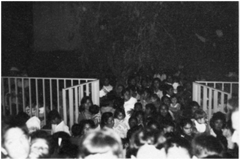 Los niños esperando entrar al templo