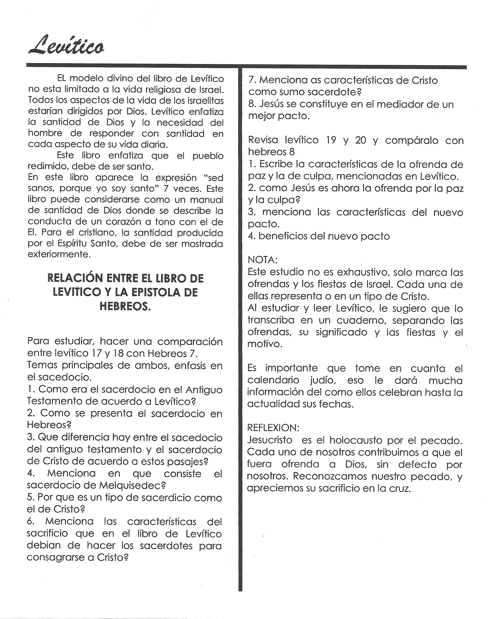 Estudio del libro de Levítico, como antecedente al estudio al libro de Hebreos.