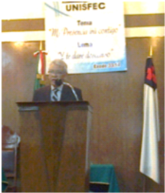 En la noche social tuvimos un tiempo de sana diversión y alegría, contando con la        06CONICA UNISFEC presencia de brandes artistas invitados, entre ellos, el payaso Copetes. Todo el programa fue organizado por las mismas hermanas de la iglesia local. Y como esas cosas que no podía faltar, la ganadora del segundo lugar del concurso y la Hna. Raquel de Saltillo, se dieron un tope cabeza con cabeza casi llegando al hotel el viernes por la noche. La Hna. Chinita se norteó y no encontraba su habitación. Es hermosa a alegría entre las hijas de Dios, como dice la Biblia, “El corazón alegre hermosea el rostro”.