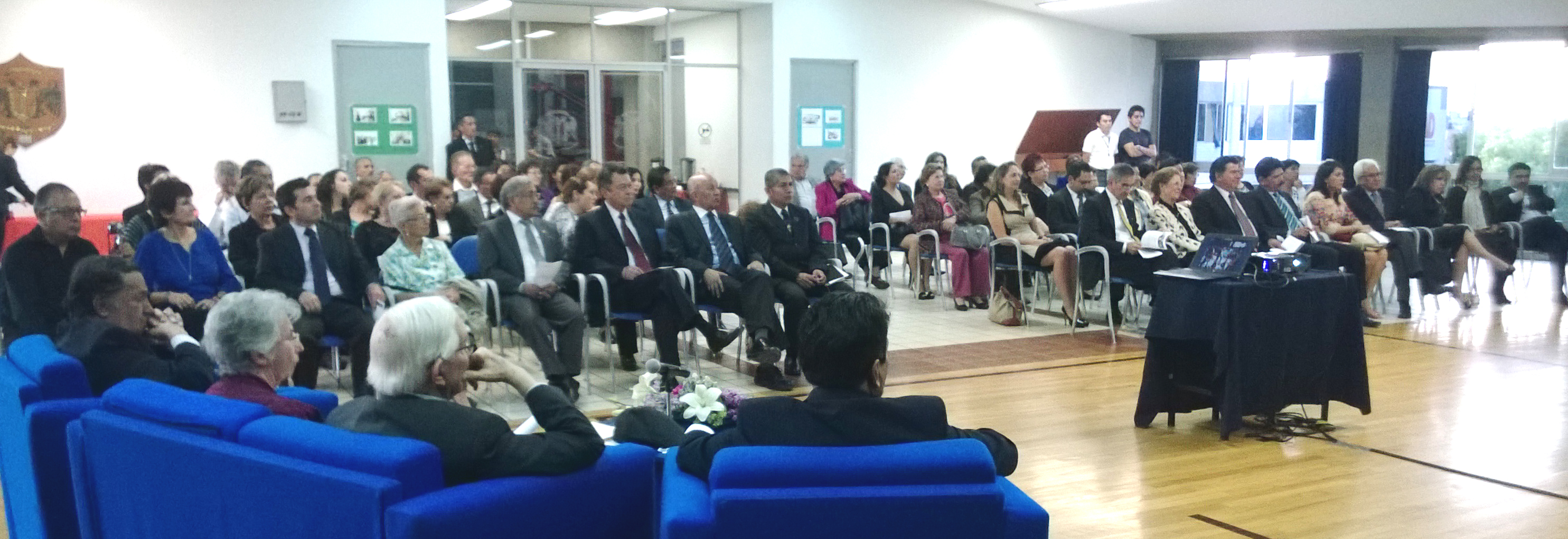 Un centenar de personas fueron testigos de los diferentes testimonios de agradecimiento a Dios por la vida de Arthur y JoAnn Chaffe. Se entregó una síntesis biográfica de ellos y se develó en el salón C-416, una placa con su nombre.
