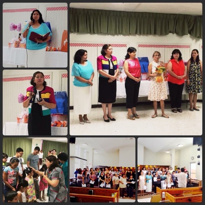 Recordando con mucho cariño y admiración a nuestras hermanas, mujeres auténticas, siervas fieles y consejeras, me refiero a las hermanas Marina Zapata de Esparza quien ya se encuentra en la presencia del Señor, a nuestra hermana Elia Zúñiga de Rosas, y Martha Palacios de García, un reconocimiento a su labor y arduo trabajo, quienes compartieron su experiencia como esposas de obispo, exaltando el nombre de nuestro Señor Jesucristo y dejando claro que vale la pena entregarnos al servicio sabiendo que nuestro trabajo no es en vano, tomamos un tiempo para orar por ellas y bendecir sus vidas, vivimos bellos momentos de oración a cargo de nuestra hermana Norma Martínez de Torres, por las esposas de pastores que están en espera de bebé y por los hijos de pastor, fue un tiempo de bendición.