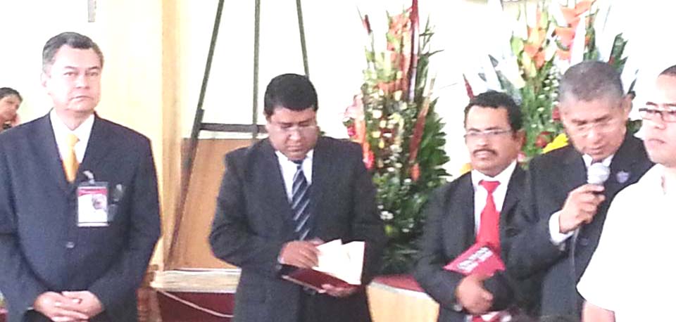 Pastor Rodrigo Salas, Superintendentes Noé Sánchez y Jair Limón y obispo Cruz Hernández