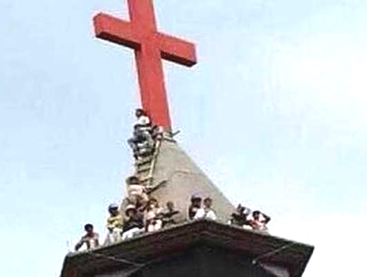 Creyentes de una iglesia protestante china permanecen más de un mes en el tejado de su templo para impedir que les quiten su cruz.
