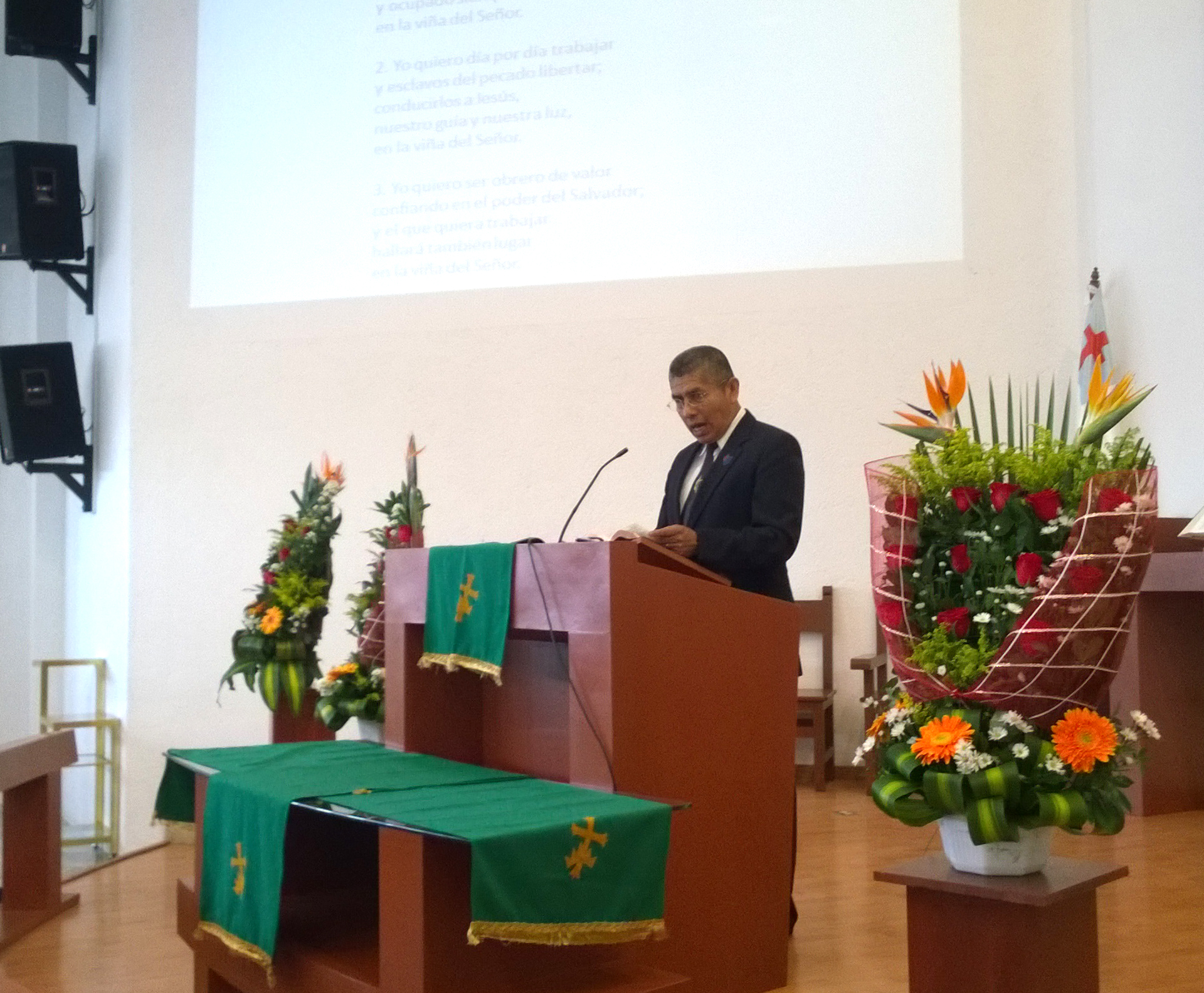 Después de la bienvenida la introducción estuvo a cargo del obispo Cruz Hernández Vargas, quien después de varias preguntas clave nos resumió el desafío que tenemos como Conferencia para el año lectivo 2015-2016: