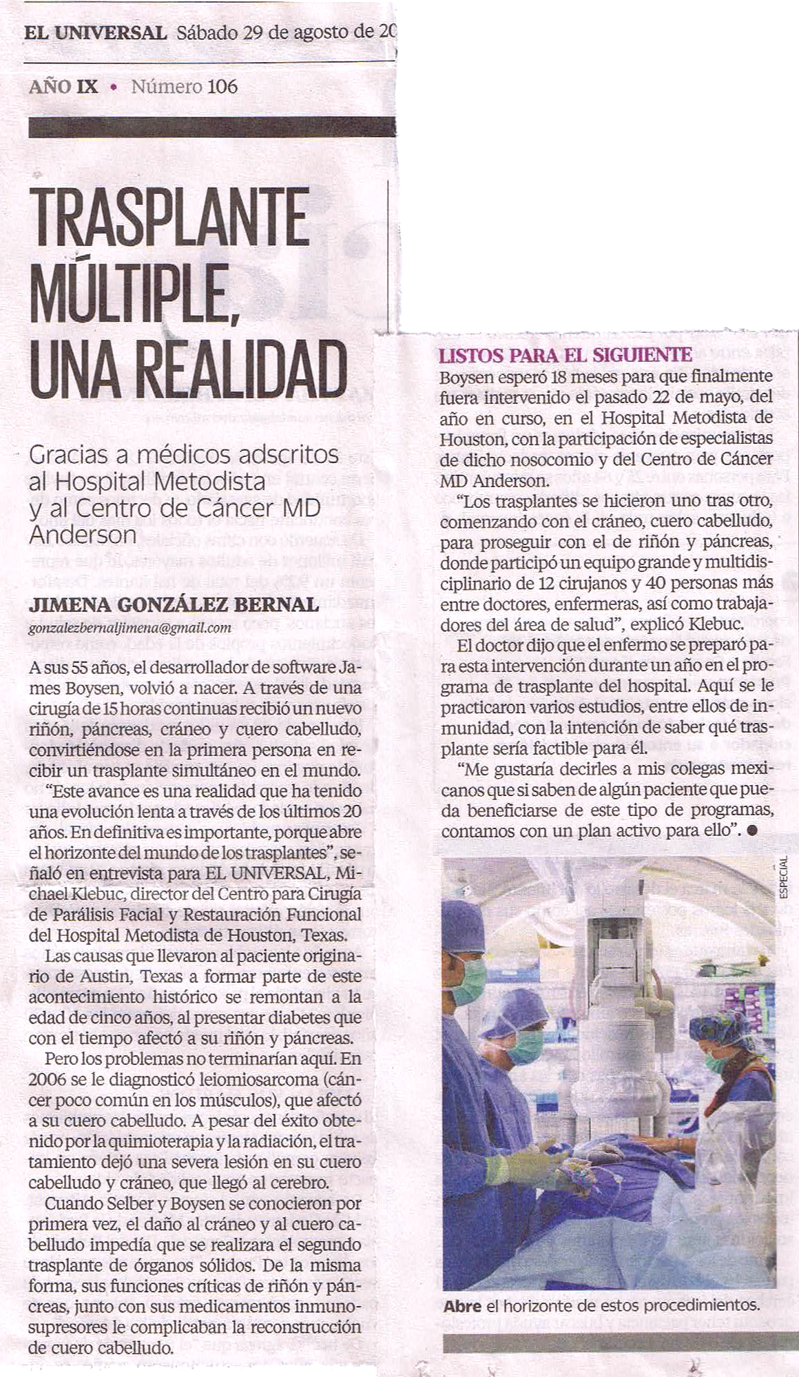 Una interesante noticia, Hospital Metodista en Houston, Texas