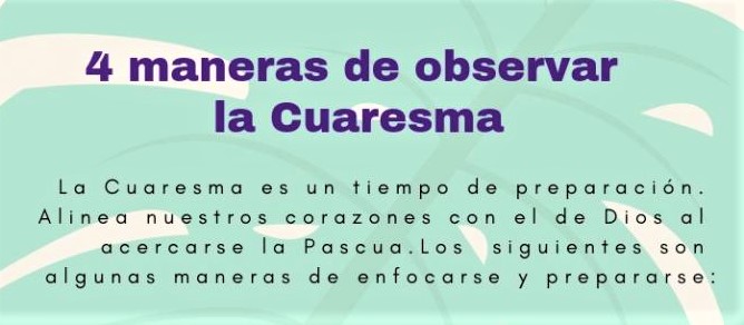 La Cuaresma es el período de 40 días antes de la Pascua (nota: los domingos no cuentan). Es un tiempo de preparación y concentración que recuerda el tiempo que Jesús pasó en el desierto antes de comenzar su ministerio público (lee Marcos 1, Mateo 4, o Lucas 4). Creemos que Jesús fue al desierto para dejar a un lado las distracciones de la vida y enfocarse en Dios y en la voluntad de Dios para él. Así que tratamos de hacer lo mismo durante la cuaresma, aunque a menudo en una escala un poco menos estricta.