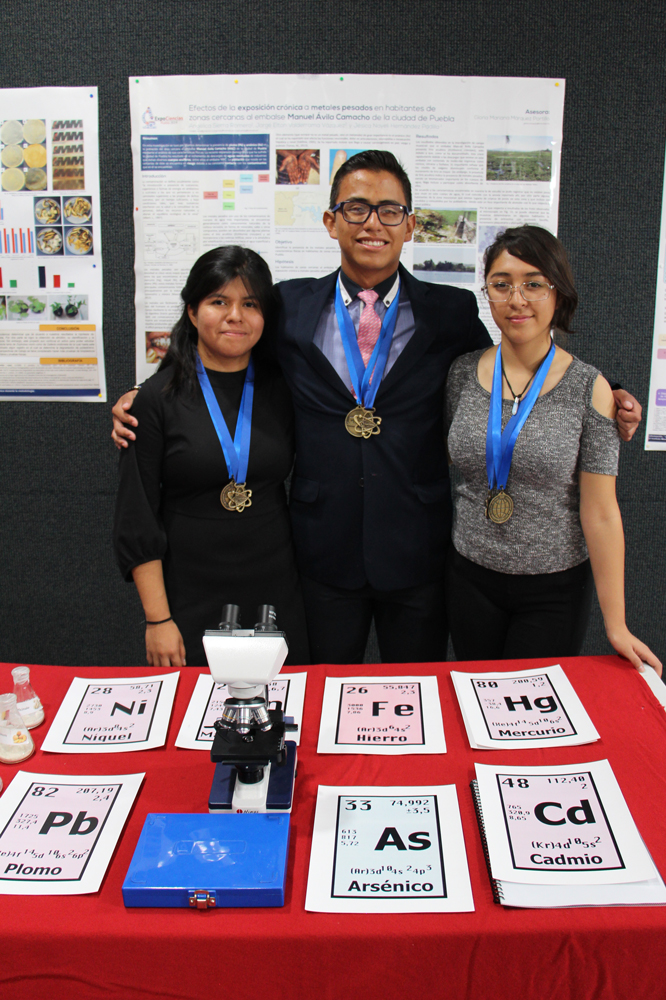 “Efecto a la exposición crónica de metales pesados en habitantes de la zona de la laguna de Valsequillo”, realizado por Angélica Sierra, Jesica Nayeli Hernández y Jorge Elton Valderrama; asesorados por la Profa. Mariana Márquez.