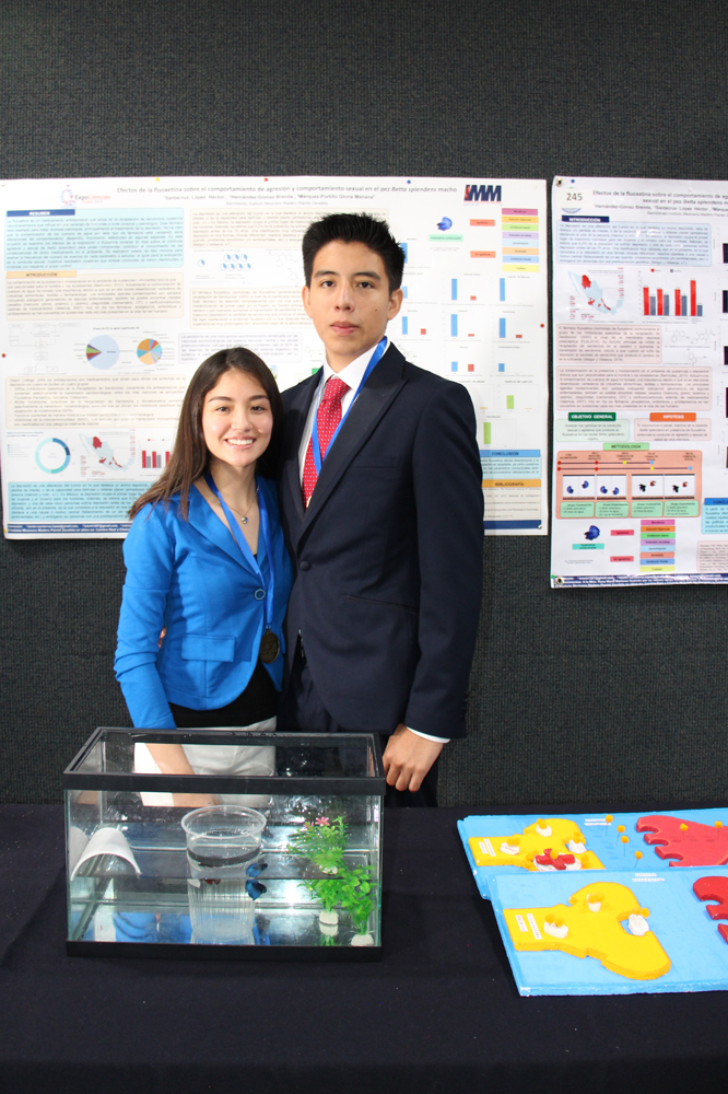 “Efecto de la floxetina sobre comportamiento conductual y sexual de la especie Beta Splendens”, realizado por Héctor Santacruz y Brenda Hernández; asesorados por la Profa. Mariana Márquez.