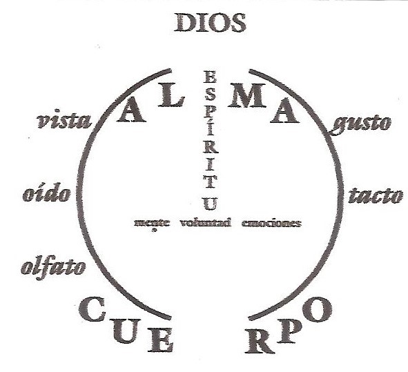 Dios lo creo a usted como un ser físico y espiritual. La parte física provino de la tierra. La parte espiritual provino del espíritu de Dios. El círculo lo representa a usted, es decir, la totalidad de su personalidad. La Biblia lo describe como una unidad. Cuando entienda cada elemento de su personalidad y como funciona, descubrirá como integrar su personalidad bajo el señorío de Cristo.