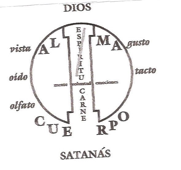 Observe que la ilustración tiene dos puertas. La puerta superior, o sea la puerta del espíritu, le permite relacionarse con Dios. La puerta inferior o sea la puerta de la carne, le permite relacionarse con Satanás. Al crear a los seres humanos, Dios les dio el libre albedrio.