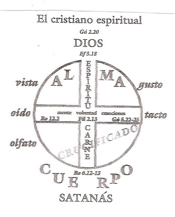 - CARNE: Romanos 6:12,13 (leerlo). Su cuerpo es un don de Dios para que tenga identidad, participe en el mundo y se comunique con los demás; no es malo en sí mismo; solamente la carne, o sea su naturaleza pecaminosa es mala. Jesús vino a morar en su cuerpo para hacer del mismo un instrumento de justicia en lugar de un instrumento de pecado. Presente su cuerpo y todos sus miembros a Dios para hacer el bien.
