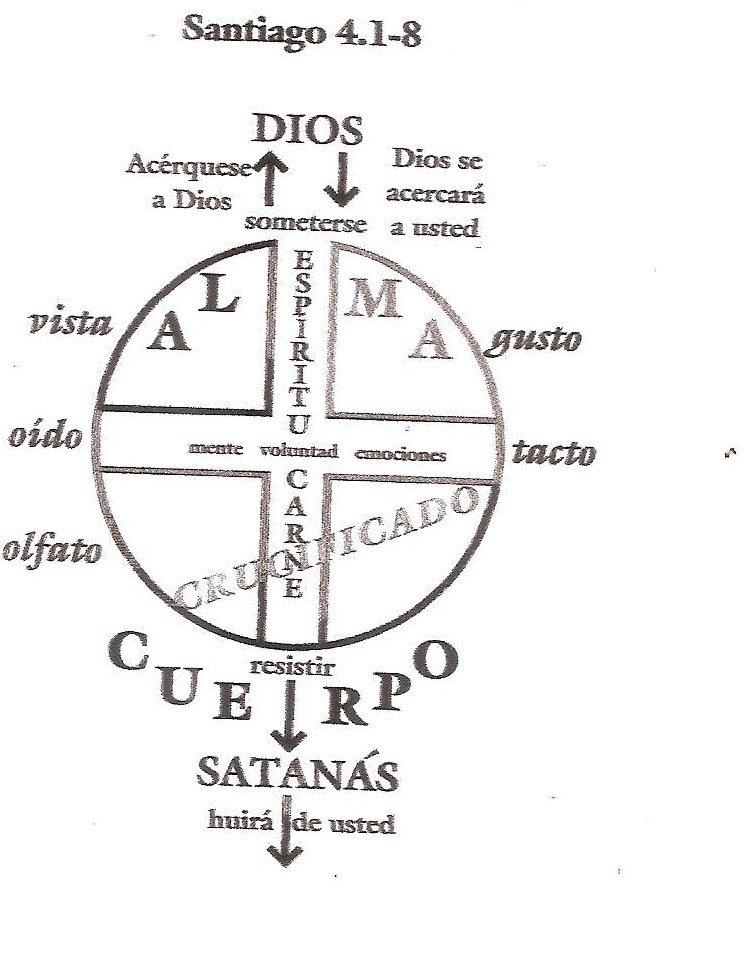 “¿De dónde vienen las guerras y los pleitos entre vosotros? ¿No es de vuestras pasiones, las cuales combaten en vuestros miembros? Codiciáis, y no tenéis; matáis y ardéis de envidia, y no podéis alcanzar; combatís y lucháis, pero no tenéis lo que deseáis, porque no pedís. Pedís, y no recibís, porque pedís mal, para gastar en vuestros deleites. ¡Oh almas adúlteras! ¿No sabéis que la amistad del mundo es enemistad contra Dios? Cualquiera, pues, que quiera ser amigo del mundo, se constituye enemigo de Dios. ¿O pensáis que la Escritura dice en vano: el Espíritu que Él ha hecho morar en nosotros nos anhela celosamente? Pero él da mayor gracia. Por esto dice: Someteos, pues, a Dios, resistid al diablo, y huirá de vosotros. Acercaos a Dios, y él se acercará a vosotros. Pecadores limpiad las manos; y vosotros los de doble ánimo, purificad vuestros corazones”.