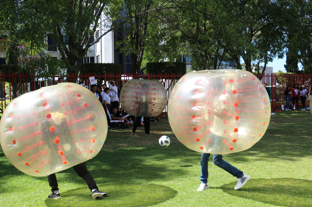 El momento de la diversión llegó con las Retas de Futbol Burbuja, donde los chicos hicieron gala de toda su destreza y condición física para disputar un partido de soccer dentro de una pelota gigante; así como el concurso de karaoke, para culminar con un rifa de diferentes gadgets.