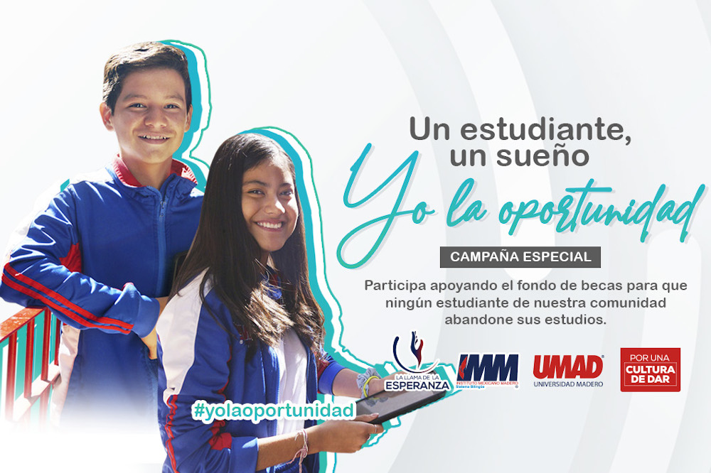 “Toda comunidad necesita apoyar a quienes serán su futuro, por eso hoy quiero invitarte a que consideres a los jóvenes que están estudiando en la Universidad Madero, el Instituto Mexicano Madero y el Instituto Normal México; para que no pierdan sus estudios por la falta de recursos que ha ocasionado el Covid-19”.