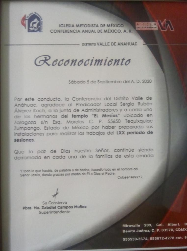¡Que Dios bendiga a la Iglesia Metodista del Distrito Valle de Anáhuac y de todo México! Y que nos permita el día en que volvamos a reunirnos.