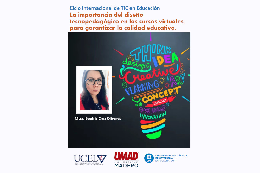 “En las clases presenciales, en ocasiones cabe la improvisación, en programas virtuales, no debe existir la improvisación, para ello, debemos utilizar un modelo o un diseño tecnopedagógico, que nos ayude a construir un ambiente de aprendizaje, donde exista un equilibrio, entre los contenidos, las plataformas educativas y los recursos TIC; de tal forma, que se garantice que el estudiante verdaderamente pueda tener un aprendizaje”, afirmó la Mtra. Beatriz Cruz.