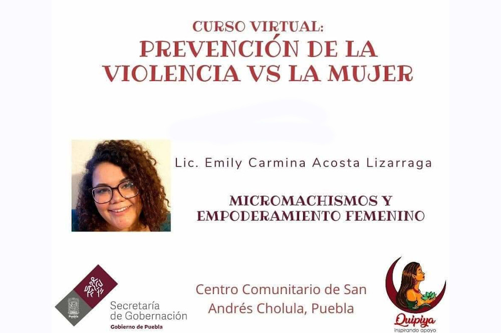 San Andrés Cholula, Puebla. Invitada por la Secretaría de Gobernación del Estado de Puebla, la destacada exalumna Emily Carmina Acosta Lizárraga, egresada de la Licenciatura de Derecho de la Universidad Madero, ofreció la ponencia “Los micromachismos y el empoderamiento femenino”, en el marco de las acciones llevadas a cabo por esta dependencia y el Centro Comunitario de San Andrés Cholula, Puebla; para la Prevención de la Violencia contra la Mujer.