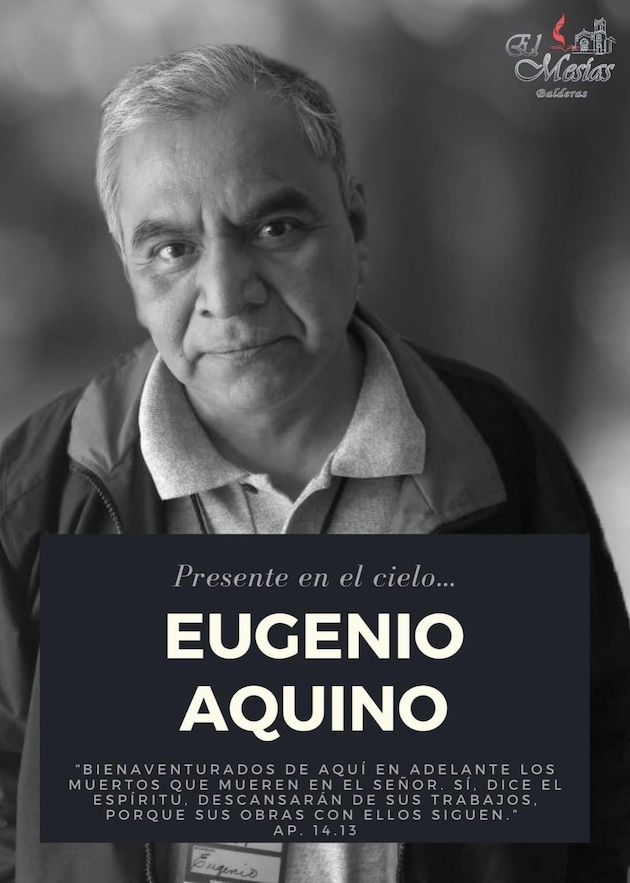 Hermano en la fe miembro de la Iglesia El Mesías, Balderas 47, en la Ciudad de México, desarrollaba su ministerio en la Unión Nacional de Traductores Indígenas (UNTI) movimiento dedicado a traducir la Biblia en las lenguas originarias de México. Eugenio era Director de Alianzas Estratégicas de la UNTI. De origen oaxaqueño, siempre se mostró comprometido vitalmente con la traducción, distribución y estudio de la Biblia.
