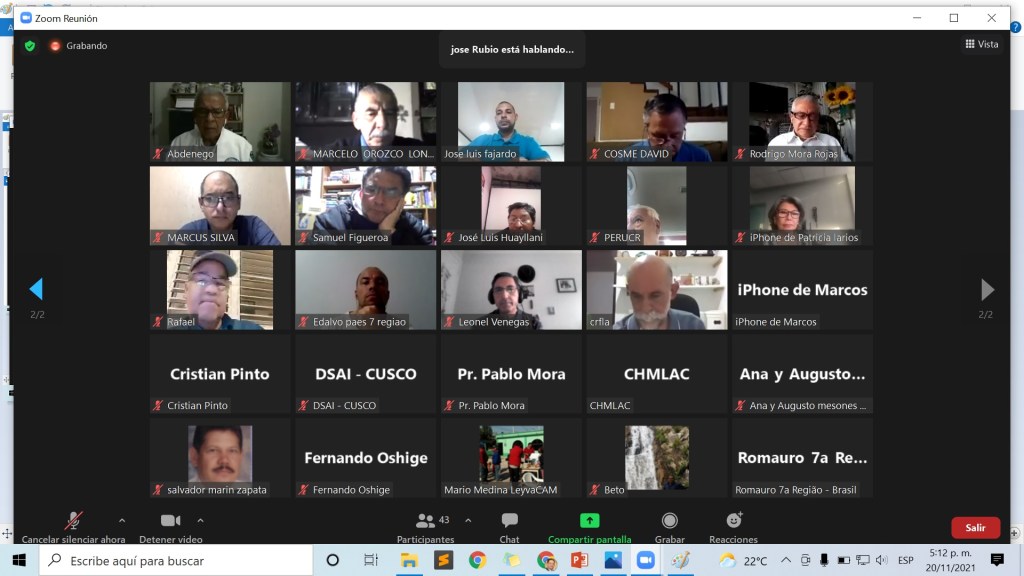 Con la asistencia de más de 70 hombres metodistas de Latinoamérica y el Caribe, el pasado 20 de noviembre se realizó un programa de Acción de Gracias por el XVIII aniversario de la constitución de la Confederación de Hombres Metodistas de América Latina y el Caribe. Bajo el tema de “Caminata con Cristo”, la reunión estuvo coordinada por Fidel Martínez Almaguer, presidente de la CHMALC, de la Fraternidad de Hombres Metodistas de México, y de Samuel Frez Aravena, representante de los hombres metodistas de Chile, quien como vicepresidente del organismo, presentó a los asistentes una detallada reseña histórica de la Confederación, desde sus orígenes y perspectivas iniciales en 2003, hasta su conformación y consolidación a través de casi dos décadas de trabajo constante, que ha llevado a la unidad del ministerio varonil en las Iglesias Metodistas nacionales de la región.