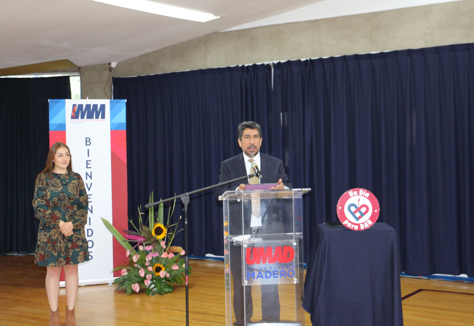En Mtro. Job César Romero Reyes, Rector de la institución, brindó unas palabras a la comunidad invitándolos a realizar sus donativos en este Día para Dar, al señalar que una sociedad que da oportunidades para todos, genera un país incluyente y resiliente; mientras que, consideró, cuando un estudiante se esfuerza por tener buenas calificaciones pero no puede continuar sus estudios por falta de recursos, se genera un ciclo de exclusión y una brecha entre los que no tienen y los que sí tienen; por ello puntualizó que podemos esperar a que un día la situación cambie o actuar desde donde estamos para impulsar ese cambio.
