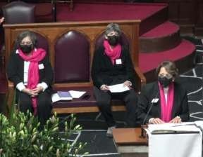 Estuvieron colaborando en la dirección del Culto las presidentas, saliente María Eugenia Rodríguez Pardo y entrante María Esther Dórame Villanueva. Estuvieron presentes la Pbra. Elizabeth Romero y el Pbro. Agustín Altamirano y Predicó el Obispo Moisés Morales Granados.