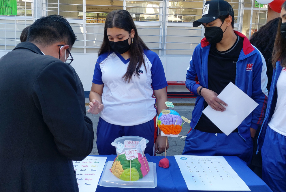 Los alumnos de Secundaria investigaron acerca de temas como: las consecuencias del Covid-19 en el cerebro, la salud del cerebro, y la relación entre el cerebro y el enamoramiento. Para concluir su actividad, en el patio de secundaria presentaron sus trabajos en una exposición donde destacó su interés y dominio del tema.