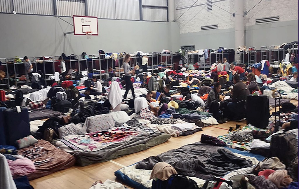 “En el edificio solo estábamos preparando comidas, pero hace un par de días tuvimos que abrirlo para albergar a unas 25 personas, la mayoría mujeres embarazadas y niños, ya que el albergue cercano estaba rebasado”, dijo el Obispo Ruiz.
