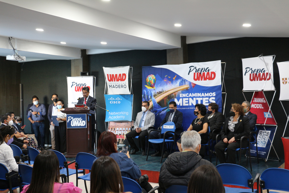Autoridades de la institución encabezadas por el Rector del Sistema Educativo Madero, Mtro. Job César Romero Reyes, presentaron este nuevo proyecto cuyo objetivo es que los estudiantes de dicho nivel, cuenten con más y mejores herramientas, así como con una mejor preparación de cara a sus estudios universitarios; todo esto a través de una formación basada en un modelo educativo que fusiona la experiencia, la calidad académica y los programas de vanguardia del Instituto Mexicano Madero y de la UMAD.