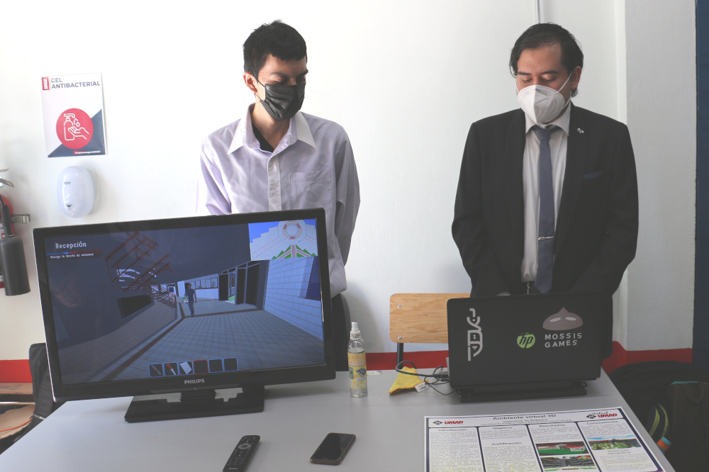 Otro de los proyectos llamativos fue el desarrollo de una aplicación interactiva en formato de videojuego, donde los alumnos recrearon las instalaciones de la UMAD con la posibilidad de realizar recorridos por cada área como salones, pasillos, jardines, biblioteca, etc., de manera virtual.