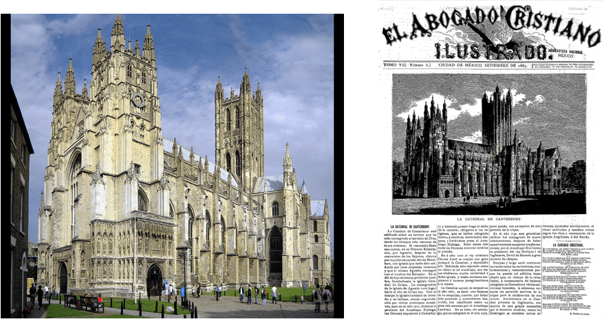 Pero entrando en materia, este número consta de ocho páginas y aborda diversas columnas. En su portada presenta la Catedral de Canterbury con un grabado de la época y narra hechos sobresalientes sobre la historia de este imponente edificio desde el año 602 con la primera edificación por la conversión de los Sajones y el apoyo del Rey Ethelbert, sus diversas transformaciones y de los daños sufridos en el año 1011, debido el saqueo para luego prenderle fuego y maltratar a los religiosos que habitaban la Catedral. La grandiosa construcción que hoy podemos contemplar (ya sea que nos traslademos hasta Inglaterra o haciendo recorridos virtuales (https://www.canterbury-cathedral.org/virtual-tour/ ) fue solemnemente consagrada en el año 1130 por el arzobispo Guillermo en presencia del Rey Enrique I de Inglaterra, David de Escocia y un gran número de obispos, dice el Abogado Cristiano. Cierra la nota con la siguiente anécdota: en los tiempos de la reina Isabel, tras haberse refugiado en la Catedral varios calvinistas franceses, la soberana reinante les permitió servirse de tan imponente edificio para la celebración de sus cultos en francés, su idioma natal.