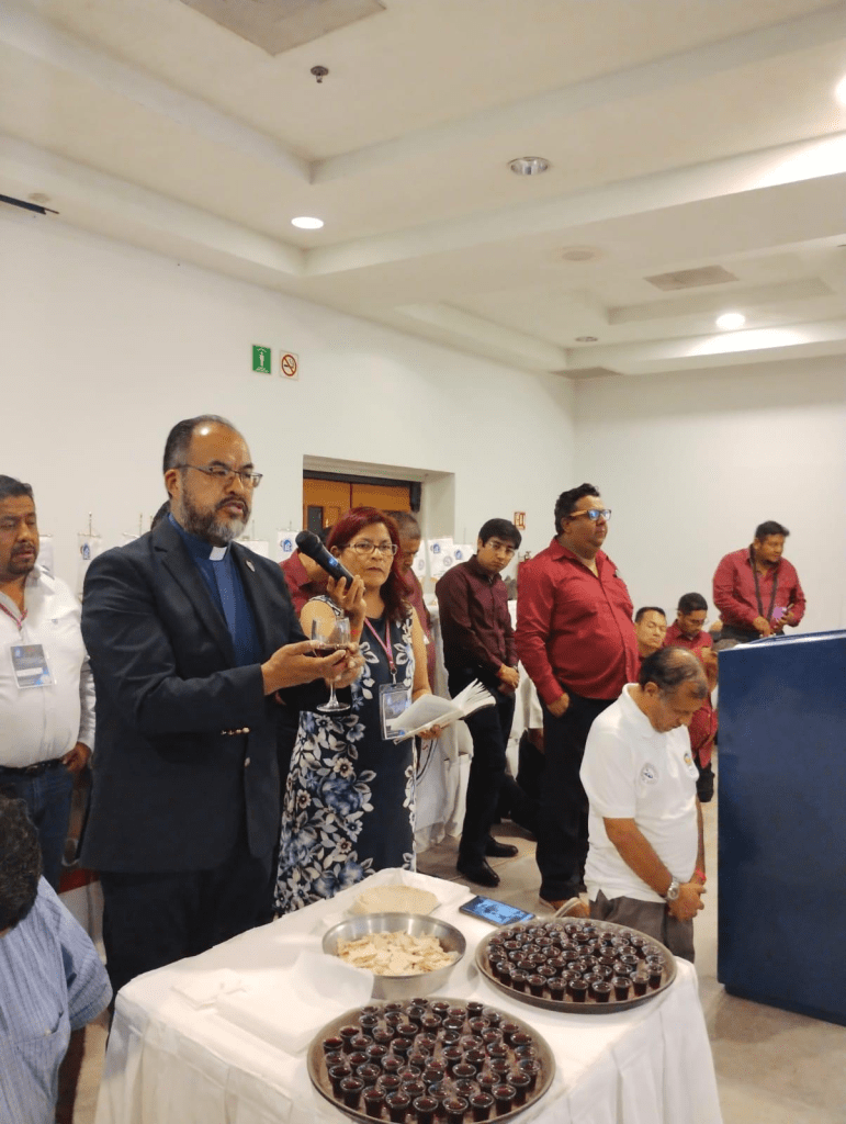 Tomamos el desayuno, preparamos la salida y regresamos al salón de conferencias para participar de la prédica “Reino de los Cielos” por parte del Obispo José Zayas M. donde fuimos confrontados a esforzarnos para entrar en el reino. Posteriormente dio inicio el Culto de Santa Cena, donde los elementos fueron impartidos por el Obispo José Zayas M., Pbra. Sonia del Carmen González C., Pbro. José Demetrio Solano R. y Pastor Rafael Espinosa G.