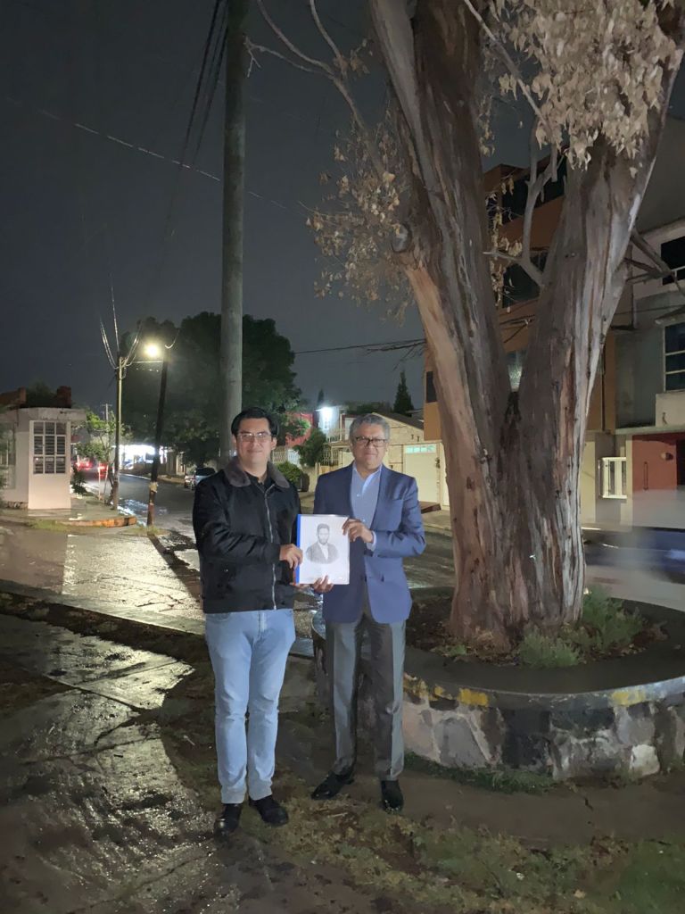Quizás, mientras Diego Baz lograba escapar de la vista de los agresores y se recuperaba para salir a dar parte de los sucesos en Apizaco, otro evangélico llamado Pío Quinto, que pasaba por el lugar de los hechos, encontró al reverendo ensangrentado, pero con signos vitales y consciente. Los familiares de Quinto dan testimonio de que Monroy le pidió a éste que le pusiese a la sombra de un tejocote (algunos otros señalan que fue un ocote) y así fue cumplida la última voluntad de don Epigmenio [En la foto de abajo, aparece el autor del escrito con el Director del Archivo Histórico Nacional, en el lugar donde se dice que fue asesinado el Reverendo Monroy, n.de la d.]. Después de esto, Pio se apresuró para dar parte a la Iglesia metodista en Apizaco; pero al llevar la camisa ensangrentada, fue detenido por las autoridades, lo que impidió que la noticia llegase a Apizaco para auxiliar a Monroy.