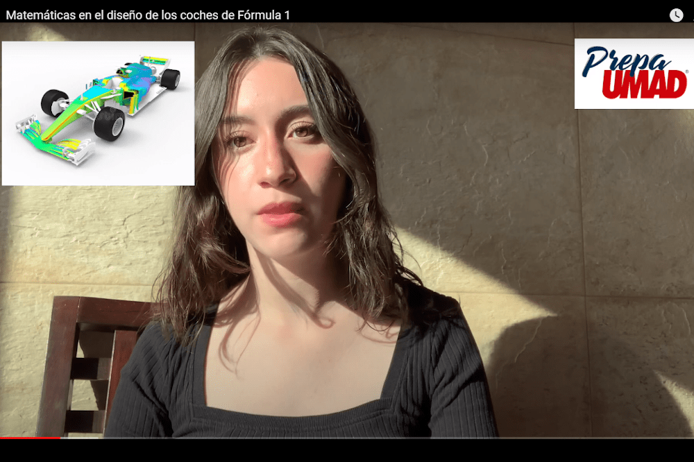 En esta ocasión la estudiante de Prepa UMAD, al realizar su presentación de manera virtual, explicó por qué las matemáticas son fundamentales en el diseño de los coches de la Fórmula 1, ya que permiten modelar y simular el comportamiento del vehículo, destacando que desde la aerodinámica hasta el diseño de los neumáticos, los cálculos permiten optimizar el rendimiento del coche en la pista.