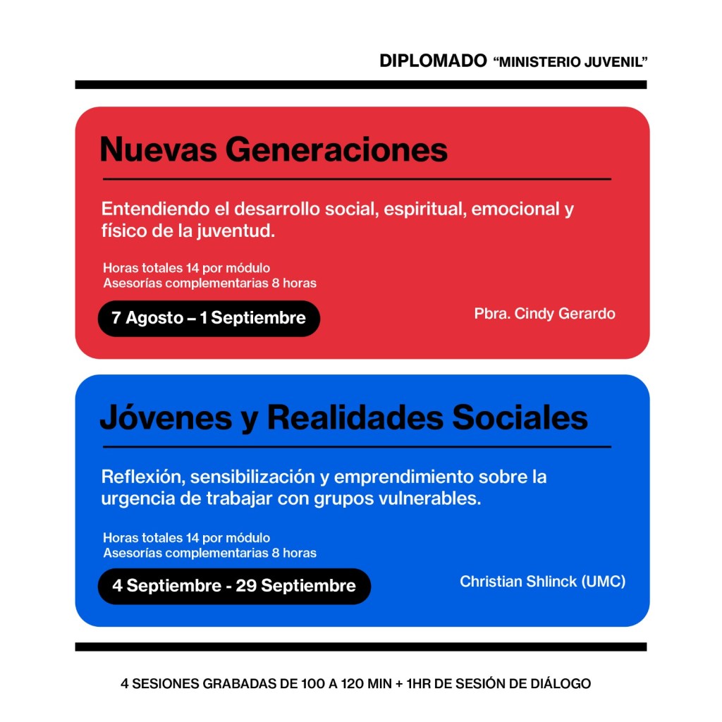 Las Ligas Metodistas de Jóvenes e Intermedios, a través de su órgano de difusión Vanguardias Juveniles, te invitan a ti, joven o adulto, pastor o líder de cualquier parte del país: ¿Quieres capacitarte para ayudar mejor en el trabajo con jóvenes e intermedios? Tenemos una gran noticia: Hay un Diplomado en Ministerio Juvenil que puedes tomar en línea: