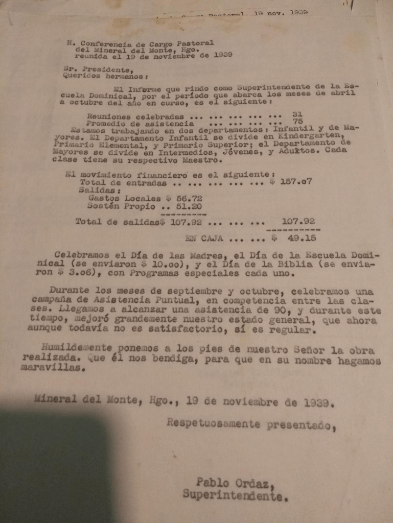 En lo que a la membresía refiere, hemos leído los datos de inicio y a 6 años de la consagración del templo, en 1939, el siguiente documento nos menciona la asistencia a la escuela dominical: