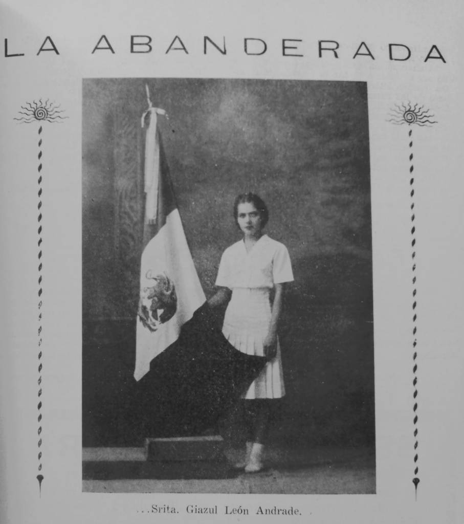 “Tuve el alto honor de ser nombrada abanderada del Colegio “Hijas de Allende”. La sorpresa que recibí cuando me lo notificaron fue indescriptible y mi contento mayor al conocer el acuerdo que bondadosamente me confirieron la Srita. Directora y las Sritas. profesoras de este plantel.
