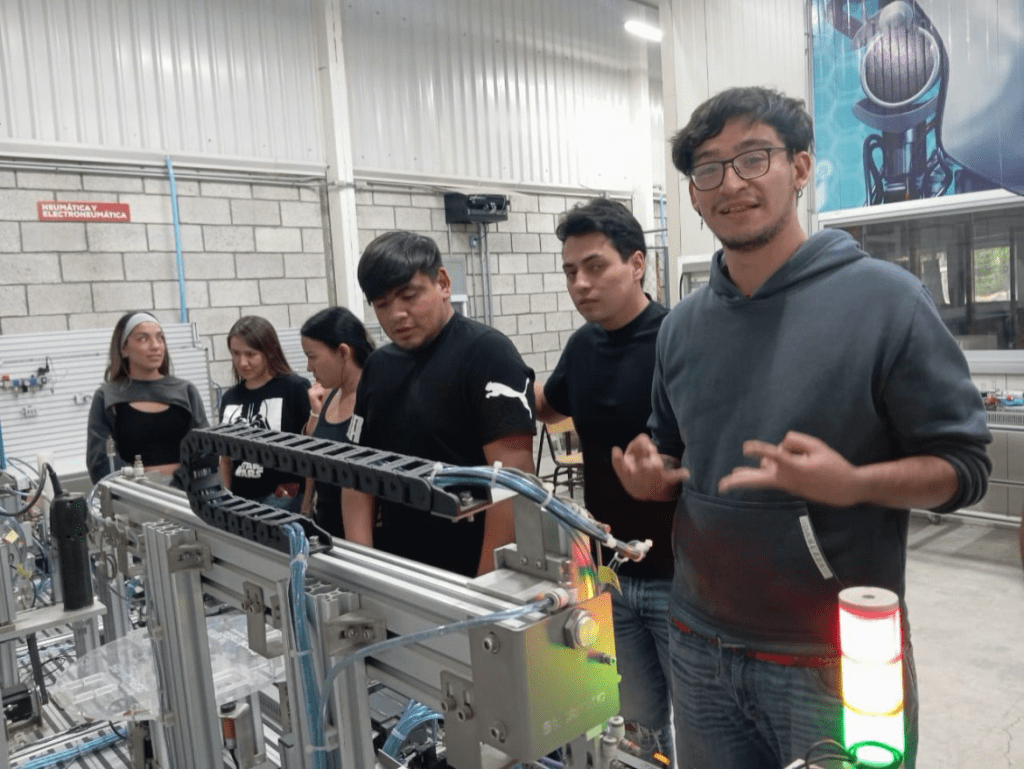 En esta práctica participaron alumnos de la materia de Productividad Empresarial, quienes tuvieron la oportunidad de interactuar con la celda de manufactura automatizada en el Laboratorio de Automatización. El Ing. Carlos Rojas y el alumno Bassam Ruíz, estudiante de ingeniería mecatrónica, guiaron a los estudiantes explicando el funcionamiento de la celda y permitiéndoles visualizar una línea de producción en acción.