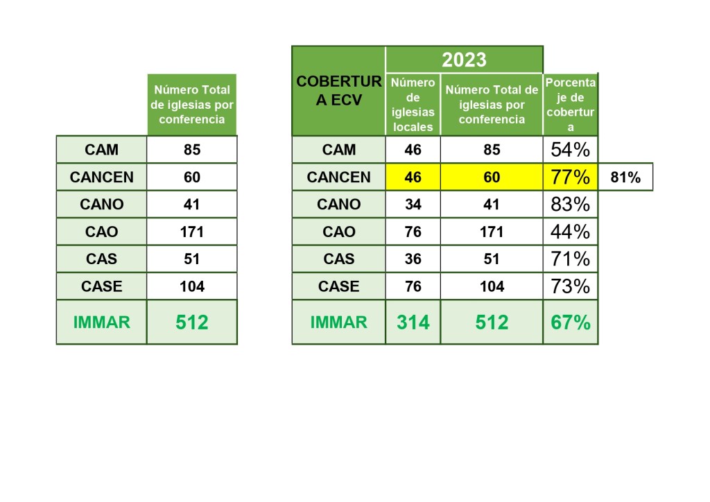 Claro, estos son datos de otro país; pero qué interesante sería si alguien se abocara a investigar cómo está la situación en México en este punto; ese dato valdría la pena conocerlo. Por lo que respecta a la Iglesia Metodista de México, aquí están datos por cada conferencia anual, de las iglesias locales que organizaron Escuela Cristiana de Vacaciones en 2023, y el porcentaje que este número representa del total de iglesias de dicha conferencia; en el caso de la CANCEN, hay una variación porque sólo se tomaron 57 iglesias para sacar su porcentaje, dado que las otras 3 son ministerios, no iglesias como tal. Los datos fueron obtenidos de la plataforma ESTIMMAR (Estadística Iglesia Metodista de México, A.R., 2023), por cortesía del Presidente del Área Nacional de Desarrollo Cristiano, Pbro. Enrique Machorro: