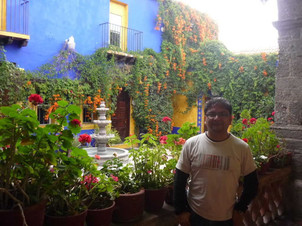 La hermana Judith, sabiendo que es debilidad de los historiadores visitar este tipo de lugares y no irse sin sacarse fotografías del recuerdo, me animó para que posara en uno de los corredores con una vista de fondo de algunos de los jardines. De igual manera, el pastor Raúl me dijo que no me podía ir sin visitar el “Centro Geográfico del País”, que refiere al punto central medio (exacto) del territorio nacional y el cual caminando desde el hotel estaba relativamente cercano.