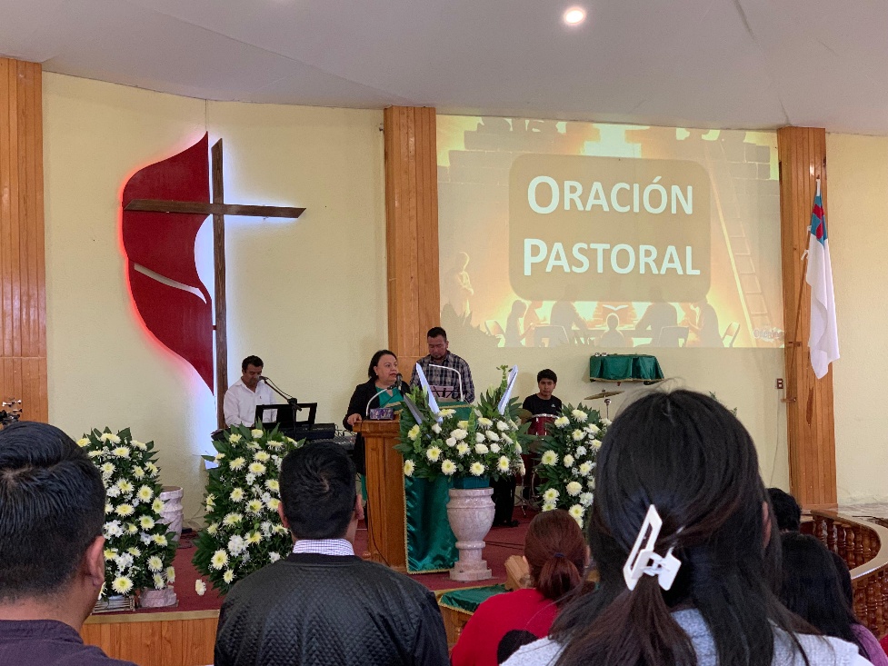 Después del suculento desayuno iniciamos con el culto de apertura y Santa Cena con el mensaje impartido por nuestro obispo, titulado: “Llamados a discipular y reconstruir” basado en Esdras 7:10. En la dirección del culto nuestra hermana y representante laico, Isela Trujillo Machorro, acompañados por el coro local.
