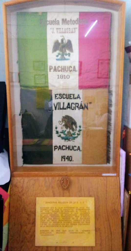 Respondiendo a la importancia de señalar estos dos acontecimientos, ésta subyace en que es uno de los pocos eventos documentados en los que un gobernador asistió de manera formal y solemne a una institución educativa metodista. La celebración del Centenario de la Independencia refuerza esto, pues ambos actos sirvieron de antesala de la inauguración del Reloj Monumental. En relación a la jura del lábaro patrio, el reportaje del 6 de octubre de 1910 refiere a que esa bandera que fue utilizada para dicha ceremonia fuese adquirida por el profesorado de la “Julián Villagrán” y puesta a resguardo para que engalanase el “Museo Escolar” de Pachuca. Sin embargo, al no existir un sitio tal, la escuela optó por conservarla con el objetivo de registrar su autenticidad y la importancia simbólica. Hasta el momento de esta publicación, dicho lábaro patrio estaba en una vitrina especial en la oficina de dirección de dicha institución. Esperamos que, al cierre de esta institución, se tenga la prudencia, consciencia y el cuidado de conservar y resguardar éste como otros objetos y documentos que dan fe de la memoria escolar del metodismo pachuqueño.