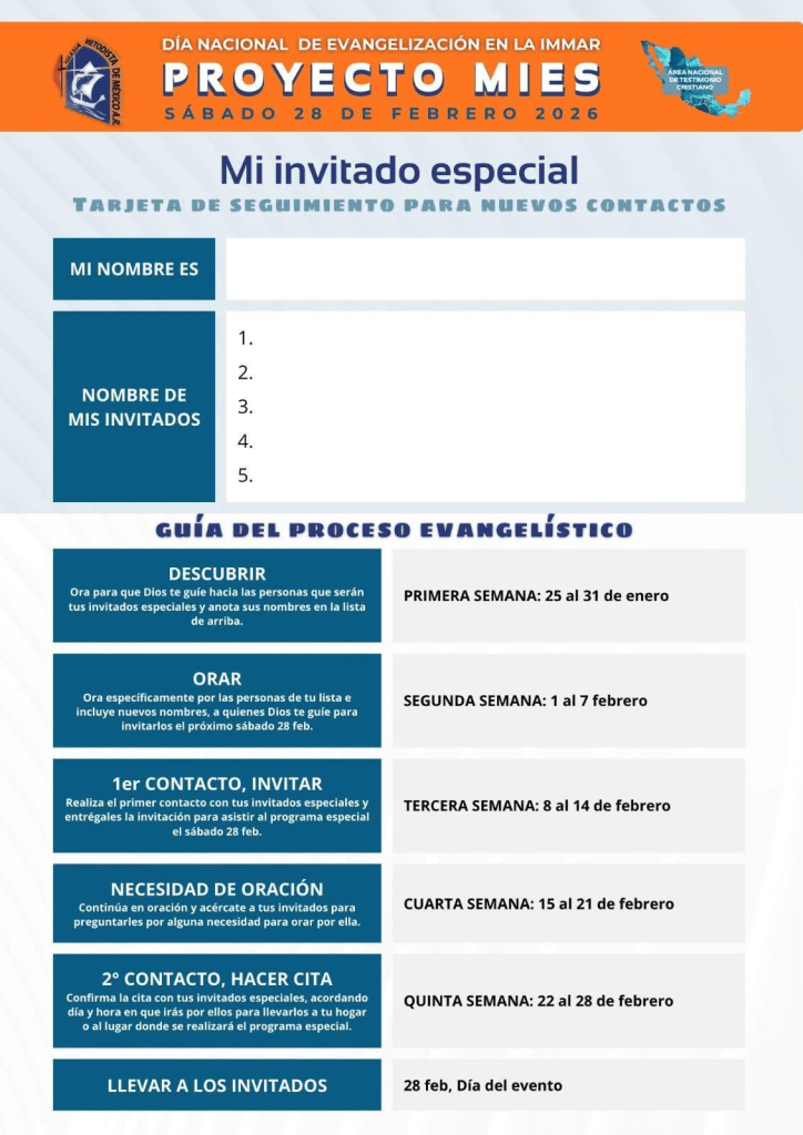 Esta publicación transcribe un devocional publicado en Facebook el 28 de enero de 2026, compartido por el Pbro. Francisco Octavio Gómez Sánchez (1). Lo presentamos como avance de esta actividad, organizada por la Comisión Nacional de Evangelización y Discipulado, para llevarse a efecto el 28 de febrero en todas las iglesias metodistas de nuestra nación. Además de la preparación en ayuno y oración, hay un proceso de contacto que aparece enseguida.