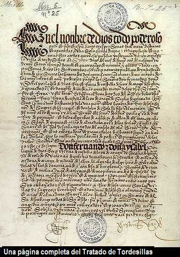 Esta división geográfica resultó en la práctica incorrecta e inaplicable, pero al menos estableció un principio genérico de reparto. Un año después, en 1494, un acuerdo diplomático hispanoluso, el tratado de Tordesillas, corrigió las zonas de influencia y desplazó en 370 millas el meridiano fijado por el papa.