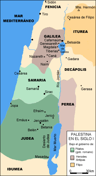 2.- El límite occidental de Palestina está formado por el Mar Mediterráneo. Por el norte se hallan las elevadas cimas de las montañas del Líbano y el Antilíbano. Al oriente y al sur se extienden los mudables parajes frecuentados por los beduinos árabes  y el reino de los Nabateos.