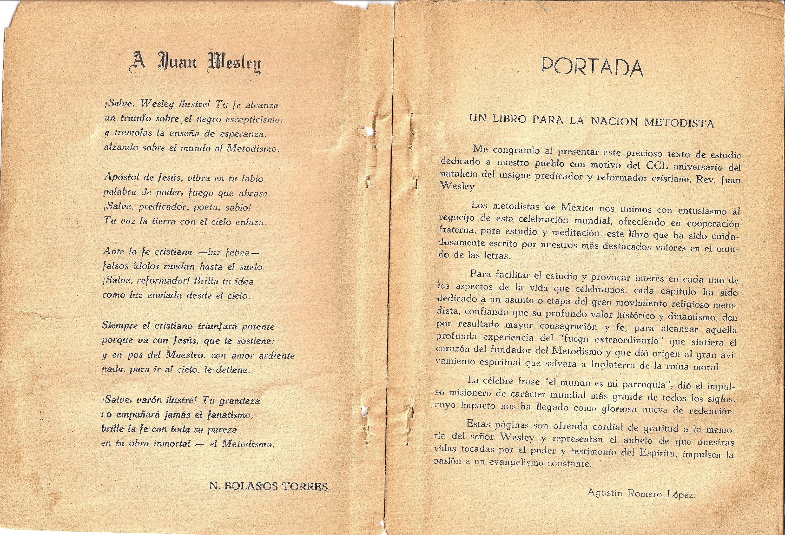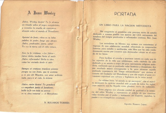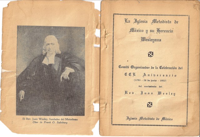 Por ejemplo, estamos reproduciendo, a partir de este número, el libro “La Iglesia Metodista de México y su herencia wesleyana”, publicado en el año 1953, para celebrar el 250 aniversario del nacimiento del Rev. Juan Wesley (1703-1953). Y contamos con otras colaboraciones al respecto.