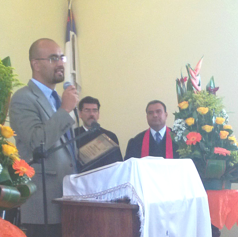 – “Gracias nena, gracias. Amados hermanos, para quienes no la conocen, ella es mi esposa Rebeca y suele ser mi correctora de estilo, mi agenda y mi correctora de lo que a veces, mi cerebro confunde. Además es también, mi complemento en todo. Gracias nena, gracias…”-