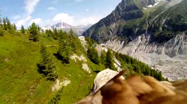 Triunfan en Youtube unas espectaculares imágenes tomadas con una cámara colocada y sujeta tras la cabeza de un águila que sobrevuela Chamonix