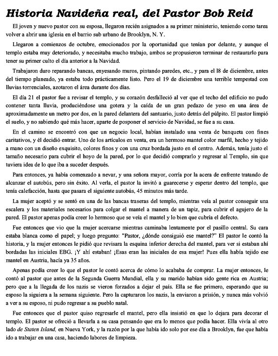 Sobre la frase más triste para Jesús, “no tenemos espacio para ti”, Max Lucado escribió “el bebé las escuchó desde el vientre de María, pero cuando fue colgado en la cruz, el mensaje fue de rechazo absoluto, “no tenemos espacio para ti en nuestro mundo”. Incluso hoy en día a Jesús se le da el mismo tratamiento. Él va de corazón a corazón preguntando si puede entrar. De vez en cuando, es bienvenido. Alguien abre de par en par la puerta de su corazón y lo invita a quedarse. Y a esa persona Jesús le da esta gran promesa “en la casa de mi Padre hay muchas moradas” Juan 14:2. Qué maravillosa promesa nos hace. Hagamos un sitió para Él en nuestros corazones, pues Él ha hecho ya un espacio para nosotros en su casa”.