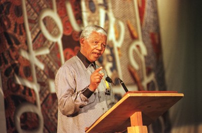 Hoy nos reunimos en acción de gracias para con Dios, con millones de sudafricanos y gente de todo el mundo para rendir homenaje y honrar a un verdadero patriota y uno de los más grandes estadistas de este siglo. Él transformó la nación y cambió el mundo. Era un hombre inspirado y un hombre que inspira.